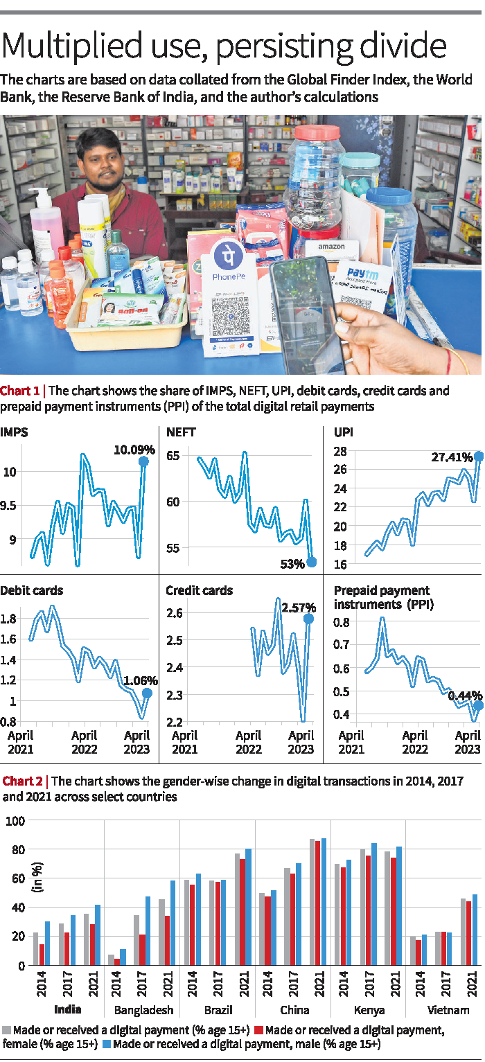 If we look at the rural-urban gap in digital payments, India again stands out when compared to countries such as Bangladesh and Kenya. Only 30% of Indians in rural areas made or received any digital payment in 2021 as opposed to 40% in urban areas. This again indicates that a substantial share of the population has been bypassed. There was no rural-urban divide in Bangladesh (both rural and urban figures were 45%). In Kenya, 74% of the rural population carried out digital transactions, while the corresponding figure in urban areas was 87%. While there was a significant digital divide between urban and rural areas in Kenya, the fact that more than 70% of the population was a part of the digital payments ecosystem is impressive. Therefore, while India has made big strides, it still has a long way to go in becoming ‘Digital India’.